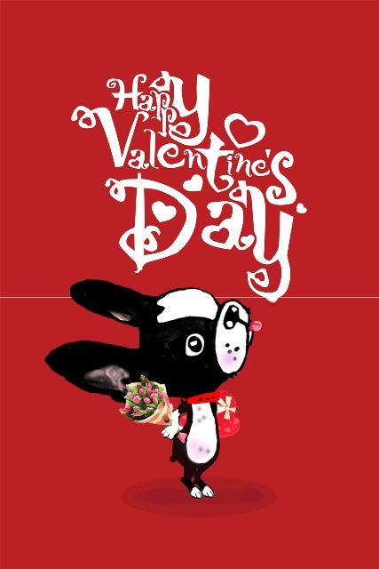 Flowers say it best! This 4.25" x 6" glossy card comes with a red envelope. The inside is blank. All our great Mirabelle Valentine's designs are available as a single card, a box of 10 cards with our custom box option, or as print on our merchandise page. Three great ways to enjoy Mirabelle everyday! Thank you for your continued support of this one small dog with a lot of big adventures.