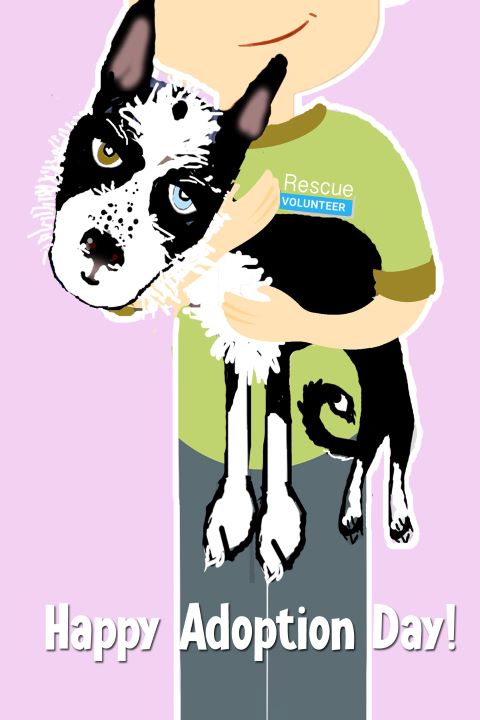 There is no better feeling than giving a furry friend Rescue a new special day all their own - Happy Adoption Day! All our great Rescue and Adoption Greeting Card designs are available as a single card, boxed set or piece of mounted artwork. This 4.25" x 6" card is on glossy stock and comes with a matching yellow envelope. Thank you for your continued support of this one small dog with a lot of big adventures.