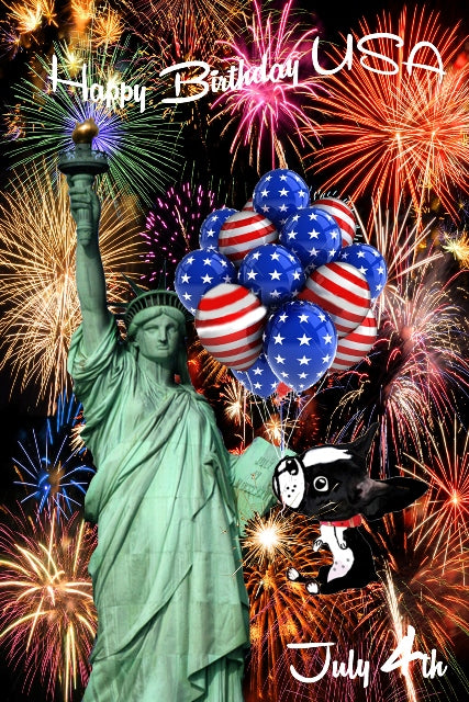 Mirabelle has Happy Birthday wishes for this great land of ours! This 4.25" x 6" card is a photographic image mounted on a decorative glossy stock border. It comes with a yellow envelope and is blank inside. All our greeting cards are available as a custom box set too. Thank you for your continued support of this one small dog with a lot of big adventures.