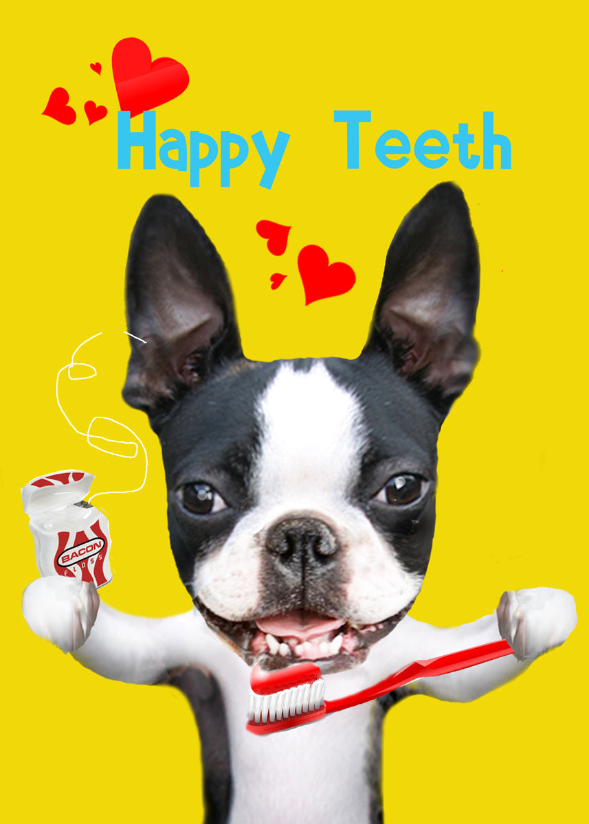 If anyone has ever know a Boston Terrier in their life they know it is all about the TEETH. Those happy little crooked teeth that make everyone smile. Miss Mirabelle knows the importance of good dental care as you can see from that big ol' Boston smile on her face and who wouldn't love Bacon floss. YUM! All our great Mirabelle "A Dog's Life" designs are available as a single card. This 4.25" x 6" card is on glossy stock and comes with a yellow envelope and is blank inside. Thank you for your continued support of this one small dog with a lot of big adventures.