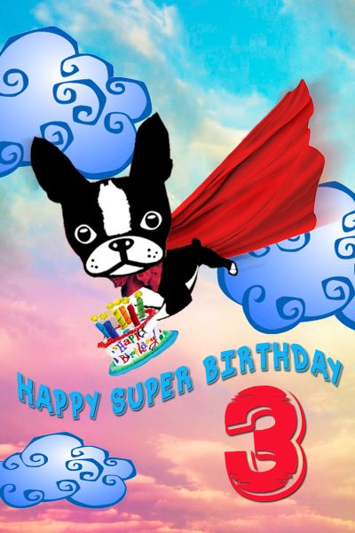 Hey number THREE is here and I can conquer the WORLD with my imagination. All our great Mirabelle Birthday designs are available as a single card. This 4.25" x 6" card is on glossy stock and comes with a yellow envelope and is blank inside. Thank you for your continued support of this one small dog with a lot of big adventures.