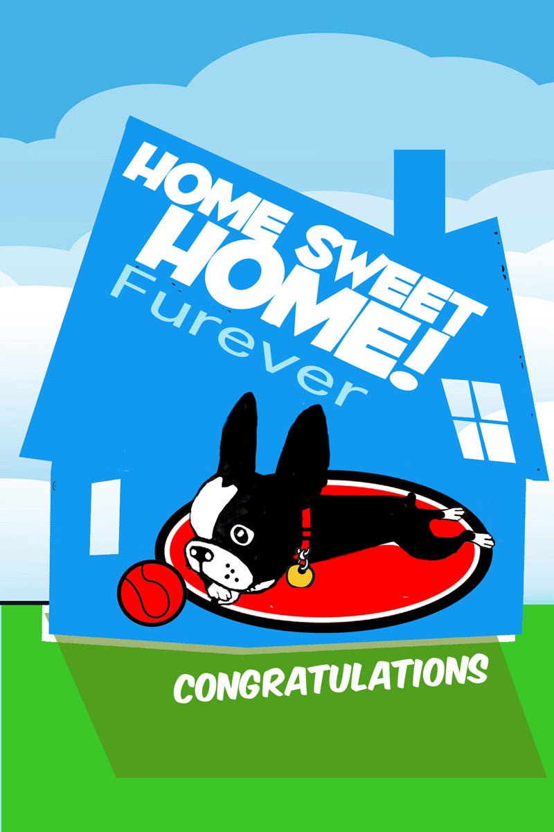 HOME SWEET HOME AT LAST! All our great Rescue and Adoption Greeting Card designs are available as a single card, boxed set or piece of mounted artwork. This 4.25" x 6" card is on glossy stock and comes with a matching yellow envelope. Thank you for your continued support of this one small dog with a lot of big adventures.