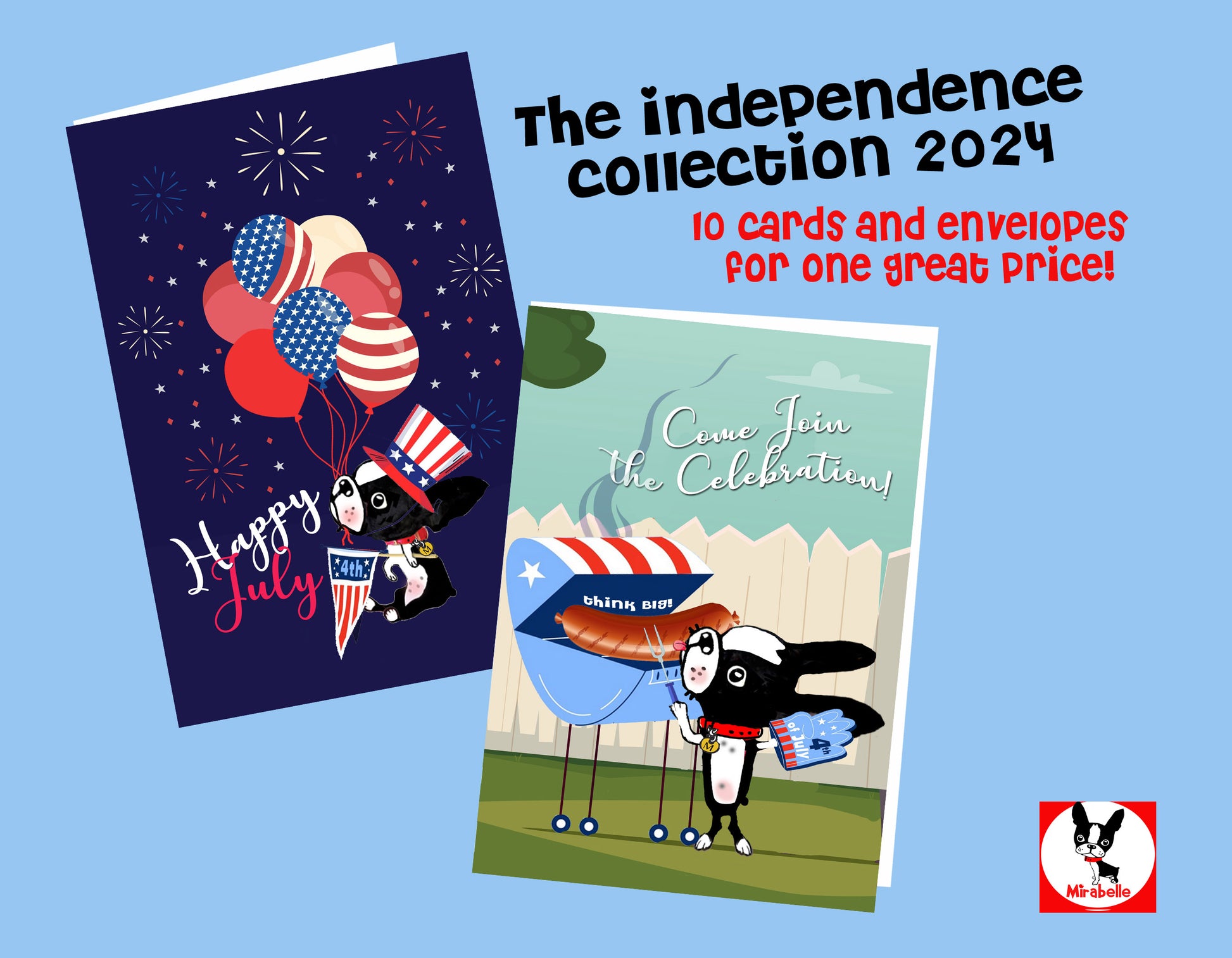 Help spread the word of Independence with a little help from Miss Mirabelle. Personal freedoms are the way. 5 of each of our great new days for a total of 10 July cards to share with your family and friends.