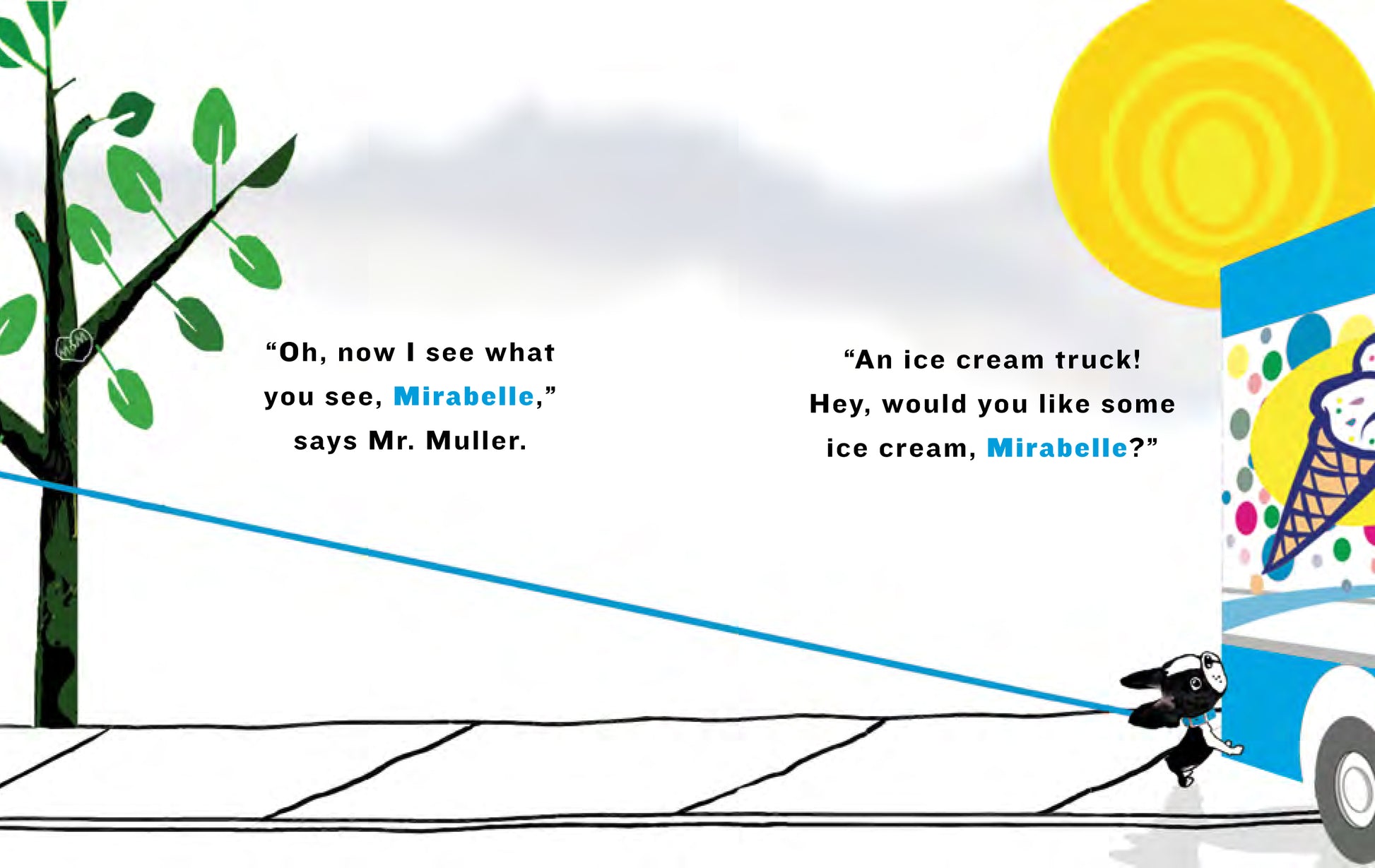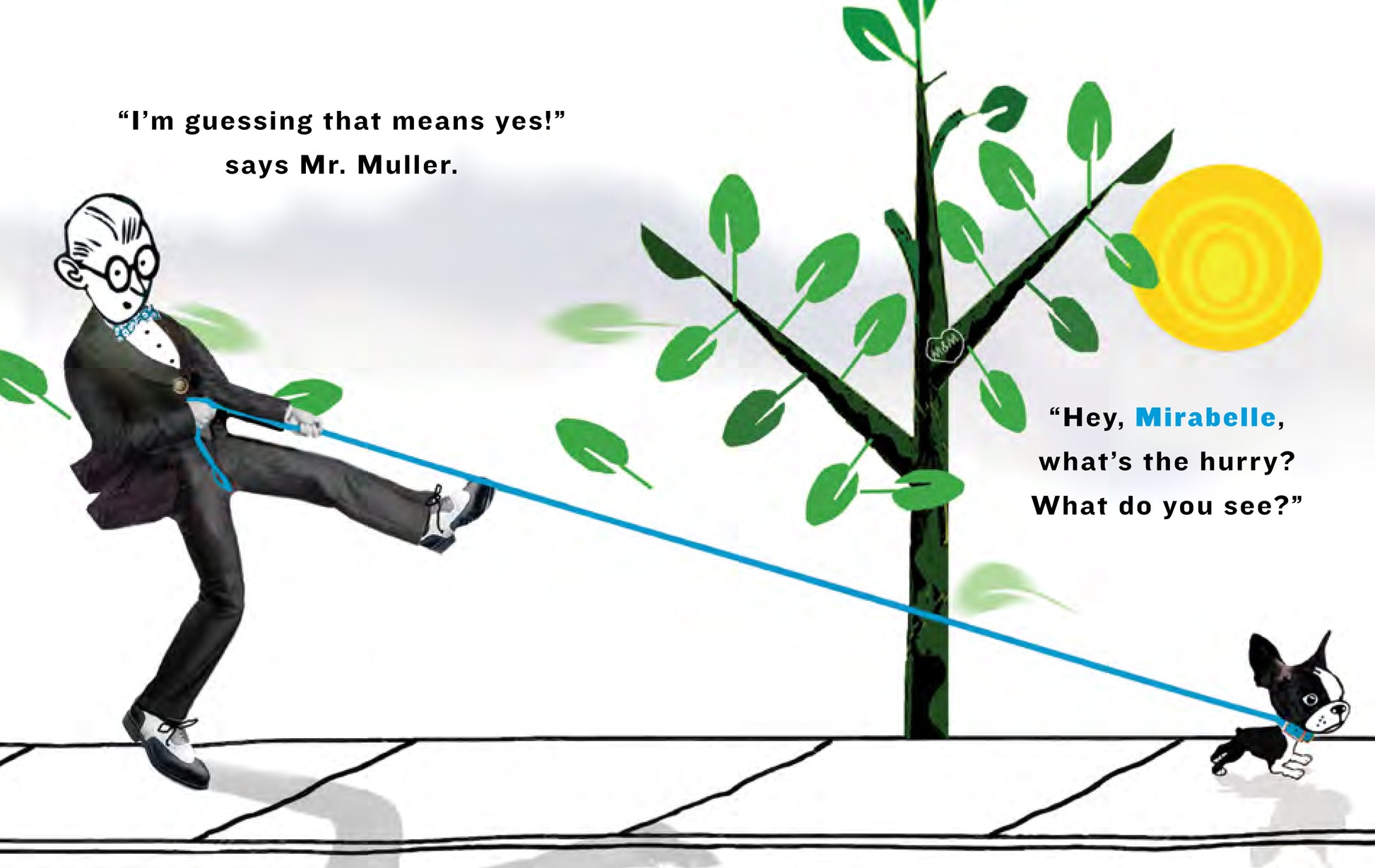 "Hey, Mirabelle," says Mr. Muller. "Would you like to go for a walk?" "I guess that means yes!" "Okay, Mirabelle, let's go for our walk!" "Wow, Mirabelle, it sure is windy outside!" says Mr. Muller. ...and a new adventure begins...take a walk with Mirabelle and Mr. Muller as they explore their neighborhood in this exciting new early reader children's book.