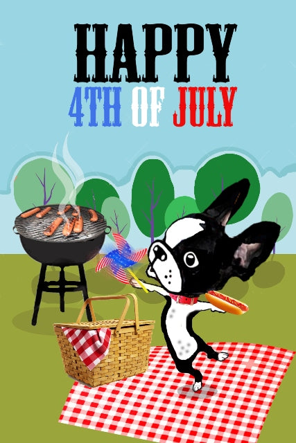 Dancing with a Pinwheel and grillin' up some hot dogs is what it's all about! This 4.25" x 6" card is a photographic image mounted on a decorative glossy stock border. It comes with a yellow envelope and is blank inside. All our greeting cards are available as a custom box set too. Thank you for your continued support of this one small dog with a lot of big adventures.